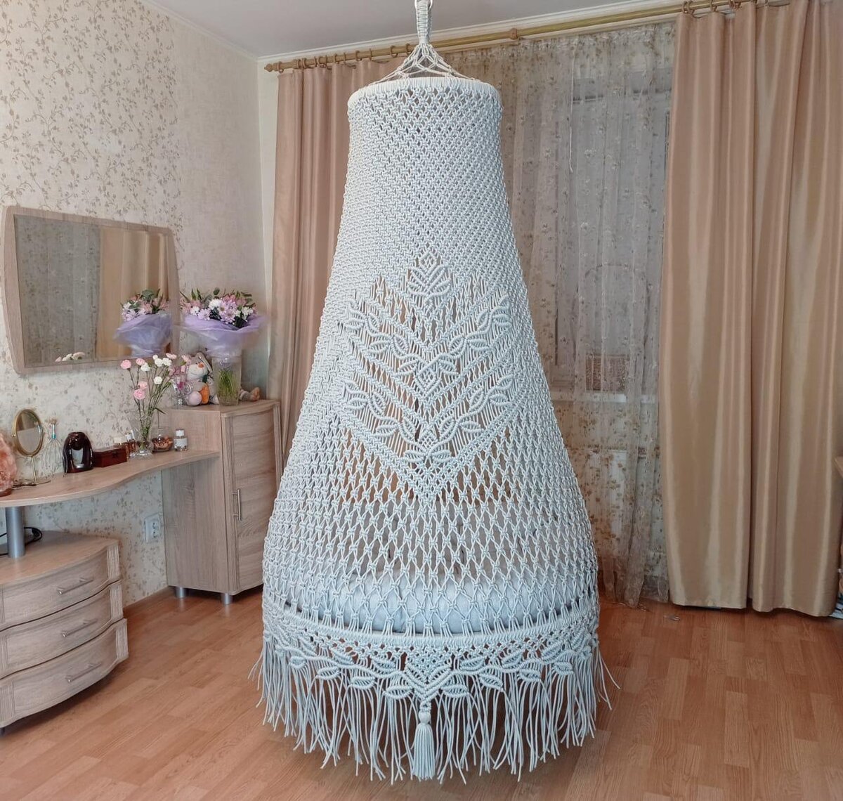 🤍💫 Шикарный подвесной шатер из гамакового шнура в цвете «Платиновый». Просто посмотрите, какие узоры, какое плетение!