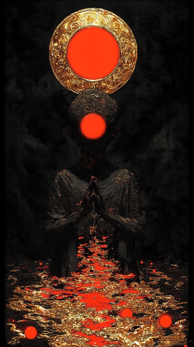 Создано на основе запроса: the golden exotic seraphim of rot emerging from the void of darkness hellish eyes
