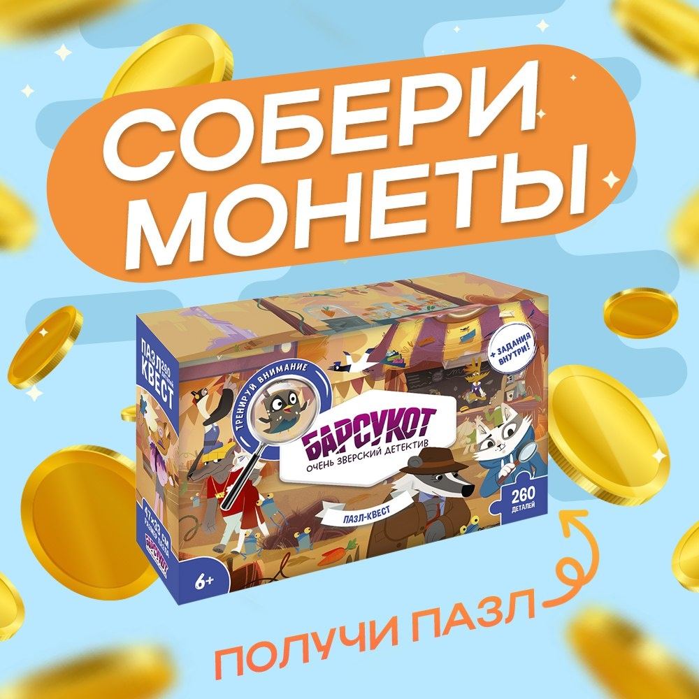 Соберите монеты и получите подарок в ВКОНТАКТЕ!🎁 Пазл-квест "Барсукот. Очень зверский детектив" достанется тому, кто до конца игры соберет больше всех! Каждая ячейка на поле - монета 🌕 Ответственный за ШТРАФЫ - Старший Барсук Собирайте бонусы! Их выдает Барсукот. Всем удачи!❤️✨