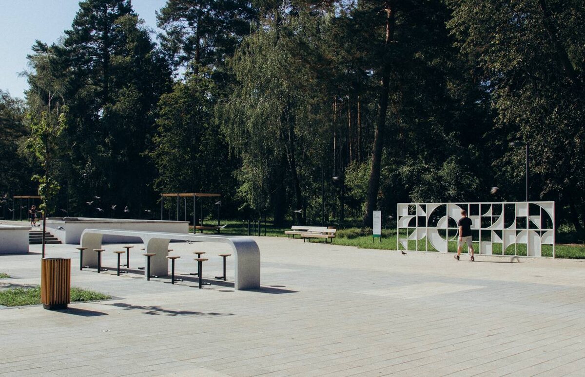 Главная задача проекта, чтобы современное благоустройство «не вываливалось» из неповторимой среды 1960-70 годов, поэтому в проекте много работы с архитектурным бетоном и характерными приемами модернизма в Протвино в виде мозаики, протвинского шрифта, минималистичных архитектурных объемов.