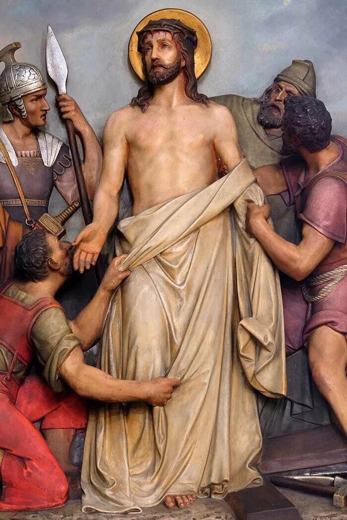 Псалом 21 Разделили ризы Мои между собой и за Мою одежду бросали жребий. Евангелие от Иоанна. 19:23-24. 《Воины же, когда распяли Иисуса, взяли одежды Его и разделили на четыре части, каждому воину по части, и хитон; хитон же был не сшитый, а весь тканый сверху. Итак сказали друг другу: не станем раздирать его, а бросим о нем жребий, чей будет, — да сбудется реченное в Писании: разделили ризы Мои между собою и об одежде Моей бросали жребий. Так поступили воины» .