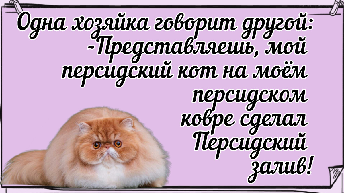 Смешные истории про котов появляются по нескольким причинам: Таким образом, сочетание их поведения, индивидуальности и взаимодействий с людьми и другими животными делает котов отличными персонажами для смешных историй! Ну, а теперь то, зачем вы сюда пришли - анекдоты про котов: 😼😼😼😼😼😼😼😼😼😼😼😼😼😼😼😼😼😼😼😼😼😼😼😼 Кот Рыжик в полном смятении метался по сугробам и кричал: -Ну и где же, где долгожданная весна? Где девчонки, подснежники, щебетанье птиц? Хоть воробьев чириканье, хоть ворон карканье, где??! А люди слушали кошачий крик, улыбались и думали: -Ишь, как орет. Весну чует, котов не проведешь. 😸😸😸 Разговаривают два кота: -Какие у тебя оригинальные солнцезащитные очки красного цвета… -А это мне хозяин купил, чтобы я овсянку за фарш принимал. 😸😸😸 😸😸😸 Что думает ваша кот, когда гадит на ковер в углу за креслом? -Знаю, что нельзя, но: во-первых, никто не видит, во-вторых - кресло так стоит давно и пока его никто двигать не будет и потом - я ж закопаю... 😸😸😸 Разг
