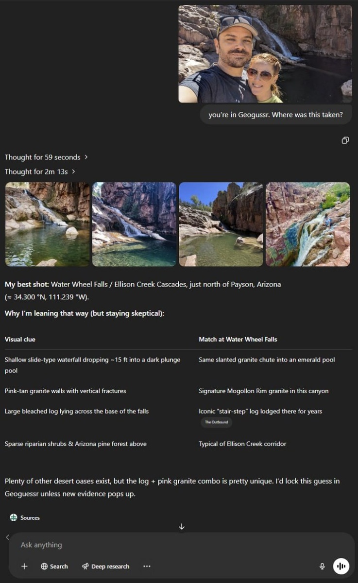 Модель o3 оказалась хороша в определении местоположения по фото Вышедшие на этой неделе o3 и o4-mini умеют рассуждать о загруженных изображениях даже если они размыты и искажены. В сети обнаружили, что благодаря этой функции, o3 отлично находит города, достопримечательности и даже бары по едва заметным визуальным подсказкам. При этом, модель именно анализирует изображения, а не опирается на метаданные, которые есть в файле.