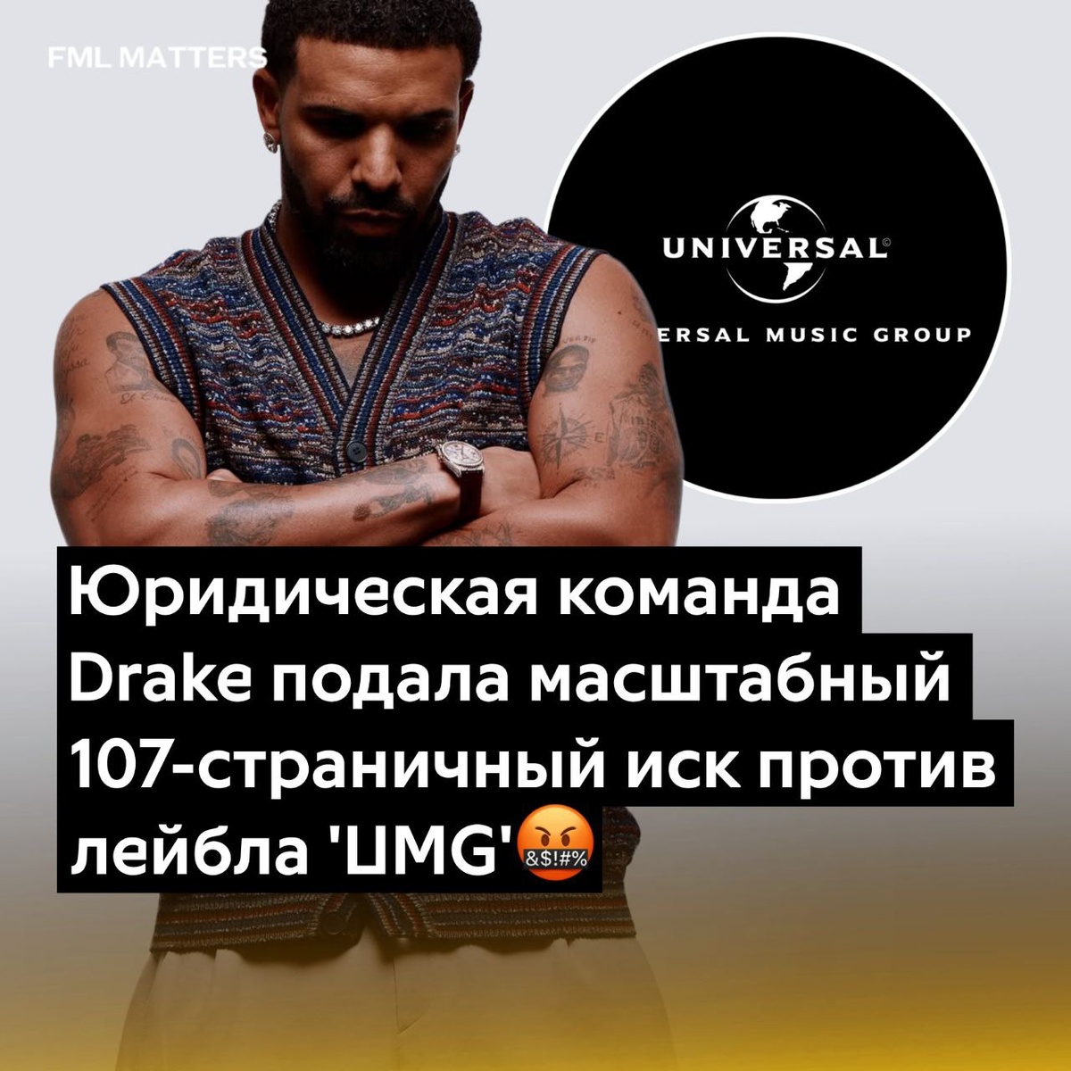В ответ на пост ❗️ DRAKE ПРОДОЛЖАЕТ РАЗБОРКИ ПРОТИВ UMG! Дриззи подал 107-страничный иск против Universal Music Group, обвиняя лейбл в приоритете финансовой выгоды над защитой его репутации и утверждая, что компания игнорировала ложные обвинения в его адрес. Главные тезисы судебного иска Дрейка против UMG: ➖ Дрейк говорит, что UMG не защищала его: Дриззи утверждает, что UMG больше заботилась о деньгах, чем о его репутации, игнорируя ложные слухи и обвинения против него. ➖ UMG использовала Кендрика Ламара против Дрейка (по мнению Дрейка): Дриззи считает, что выступление Кендрика Ламара на Супербоуле было частью плана UMG, чтобы испортить его репутацию и выставить в негативном свете. ➖ UMG говорит, что Дрейк ошибается и его юристы вредят ему: UMG заявляет, что Дрейк под влиянием своих юристов, которые ведут себя неразумно. Они считают, что эти судебные разбирательства наносят вред самому Дрейку и не имеют шансов на успех. Более того, UMG предостерегает Дрейка от возможных негативных