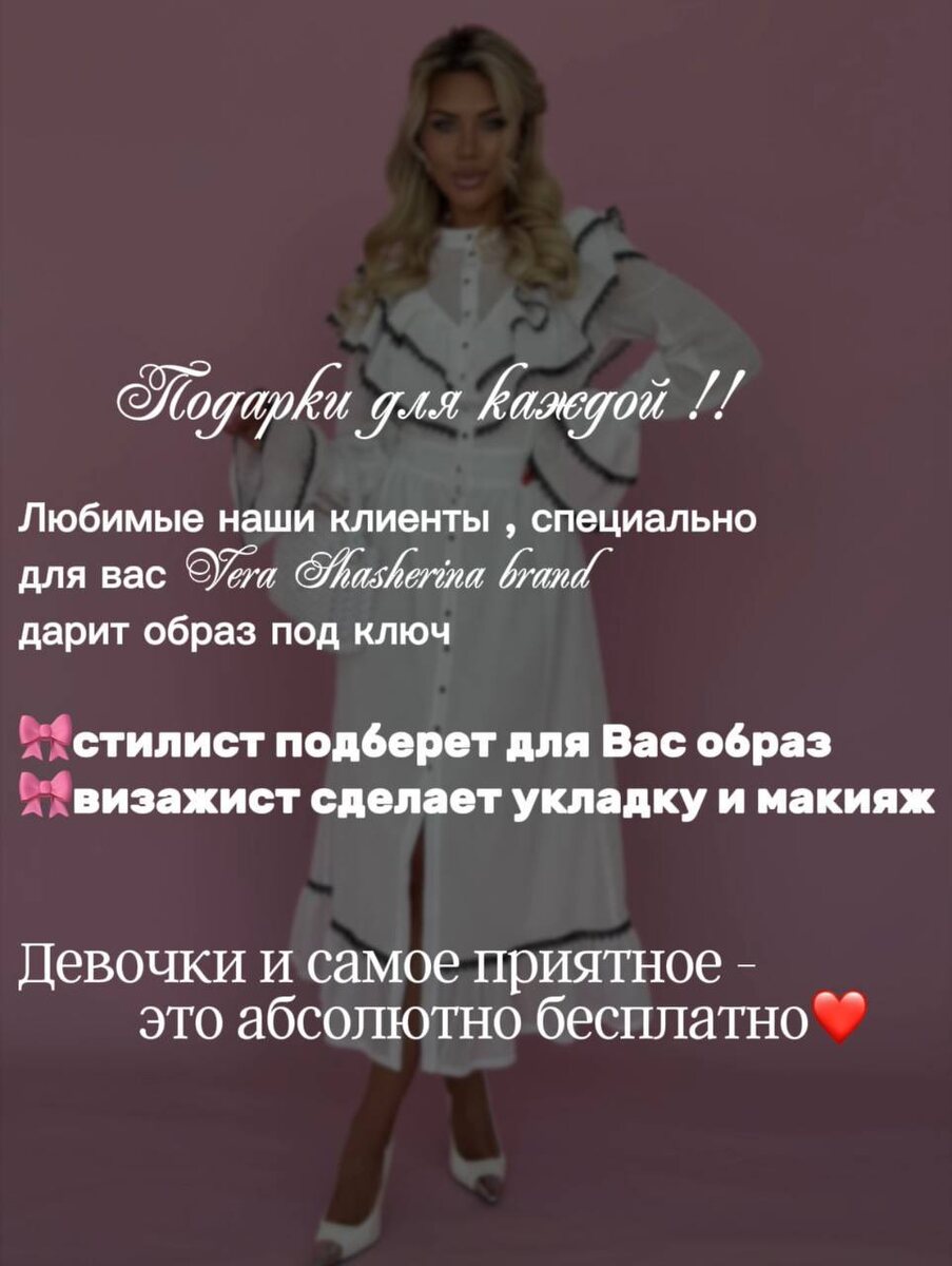 🔥🔥🔥 УЖЕ ЗАВТРА 🔥🔥🔥 Самый классный клиентский день Vera Shasherina brand! Готовы окунуться в мир стиля и красоты? Vera Shasherina brand приглашает вас на клиентский день, который превзойдет все ваши ожидания! 🎀 Персональная консультация от ведущего стилиста. 🎀 Визажист подберет идеальный макияж, подчеркнув вашу природную красоту. И все это – под звон бокалов шампанского! 🥂 маленьких сладостей, которые сделают этот день незабываемым. 🎁 Присоединяйтесь к нам завтра, чтобы почувствовать себя королевой! 👑