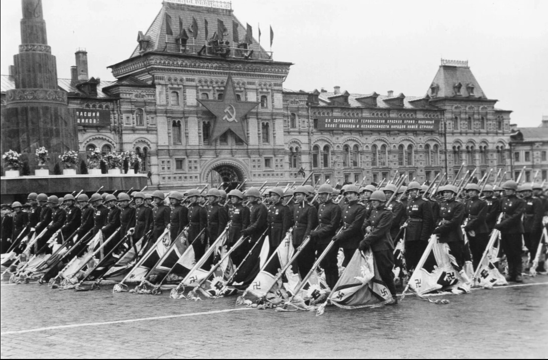 «Парад поверженных»: Знамёна Рейха в подножии Мавзолея - триумф и возмездие на Красной площади 24 июня 1945 года. Москва. Красная площадь. Небо, пронзительно синее после долгих военных лет, кажется, замерло над торжественным молчанием многотысячной толпы. В этот день здесь, на главной площади страны, торжествует Парад Победы – апофеоз триумфа советского народа над фашистской Германией. Но самым впечатляющим и запоминающимся моментом этого исторического события стало не прохождение войск и техники, а зловещая процедура поверженных знамен и штандартов Третьего Рейха, брошенных к подножию Мавзолея. Этот акт, полный символизма и справедливости, стал зримым воплощением возмездия за миллионы жизней, разрушенные города и села, за неисчислимые страдания, жертвенные на советской земле. Символ крушения «Тысячелетнего Рейха»: Зловещая процессия к Мавзолею Более двухсот знамен и штандартов свергнутой Германии – символов гитлеровской агрессии и идеологии – были доставлены в Москву специальным ре