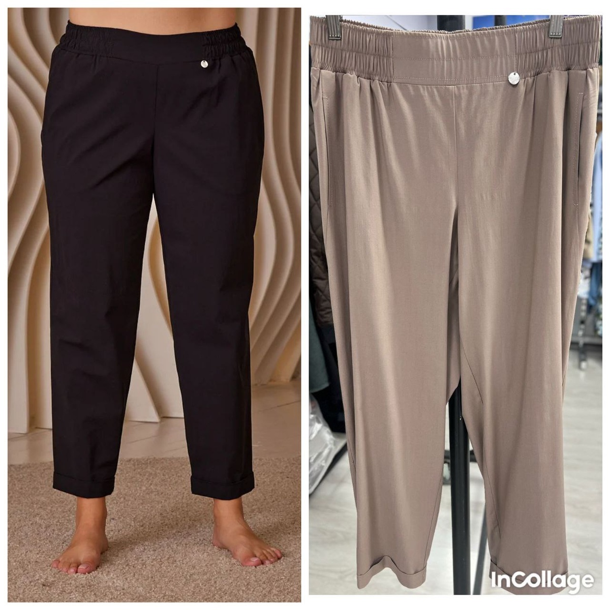 Лёгкие невесомые брюки на резинке. Это незаменимая вещь в летнюю жару для тех, у кого проблемы со стиранием ног. Да и не только. Ткань выше всяких похвал. Комфортная посадка, тело дышит. Кожа вам скажет "спасибо". Размеры 50-64. Цвет чёрный и капучино.