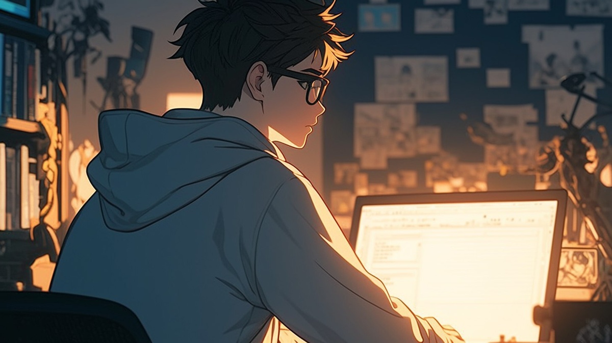 Создано на основе запроса: A young man in his 20s wearing glasses is working on a laptop in a dark office.comic, American comic, ultra detailed, back view, close-up, birds-eye view, shallow depth of field, --- Автоперевод: Молодой человек в возрасте 20 лет в очках работает на ноутбуке в темном офисе. Отлично выглядит? 🤔 https://dzen.ru/id/65c0c65c86e4f837c27b24d7 #ИИ #AI #нейросеть #midjourney #art