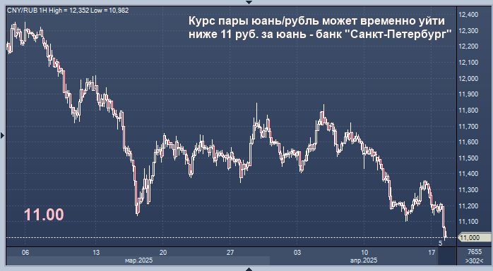 Курс пары юань/рубль может временно уйти ниже 11 руб. за юань - банк "Санкт-Петербург" Курс доллара к рублю расчётный, фьючерс, вечный фьючерс и межбанк. Курс евро к рублю расчётный, фьючерс, вечный фьючерс и межбанк. Курс юаня к рублю биржевой, фьючерс, вечный фьючерс и межбанк. Курс валютной пары юань/рубль может временно уйти ниже уровня в 11 руб. за юань в текущих условиях повышенного рыночного позитива, считают аналитики банка "Санкт-Петербург". Котировки нефти марки Brent, по мнению экспертов, в ближайшее время попробуют задержаться выше отметки в $67 за баррель, особенно если Банк Китая на выходных решит снизить ставки LPR. Настоящее сообщение содержит мнение специалистов инвестиционной компании или банка, полученное Интерфаксом. Такое мнение предоставляется исключительно для целей ознакомления и не является рекомендацией для покупки, продажи ценных бумаг, принятия (или непринятия) каких-либо коммерческих или иных решений. За содержание сообщения и последствия его использования