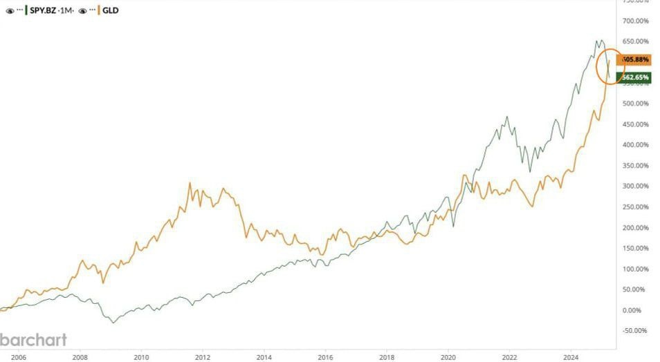 Золото обогнало по доходности индекс S&P 500 за последние 20 лет (включая дивиденды)