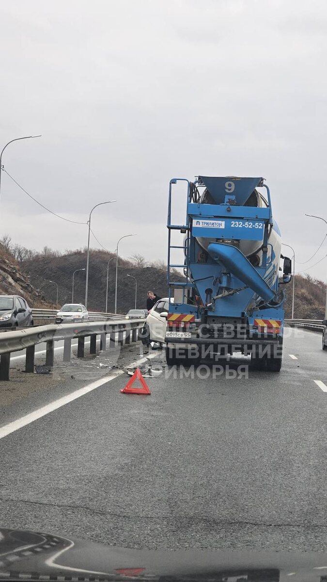 К стандартной пробке добавилась пробка по пути в сторону Тихой - ДТП с бетономешалкой