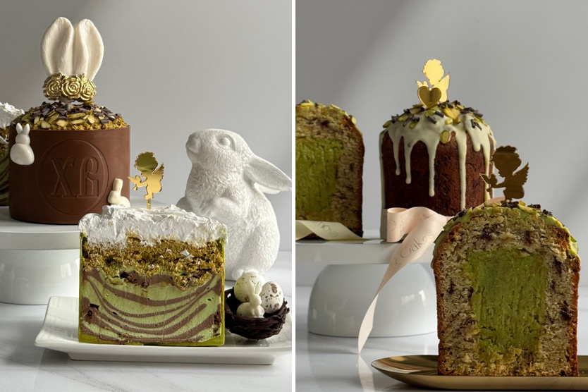 Дубайские куличи, вдохновленные популярным дубайским шоколадом, набирают популярность в 2025 году не только из-за вкуса, но и эффектного вида. Их особенность — нежная фисташковая начинка, ароматные восточные специи и сияющее золотое украшение. А сверху куличи покрыты изумрудной «шапочкой» из фисташкового крема и белого шоколада.