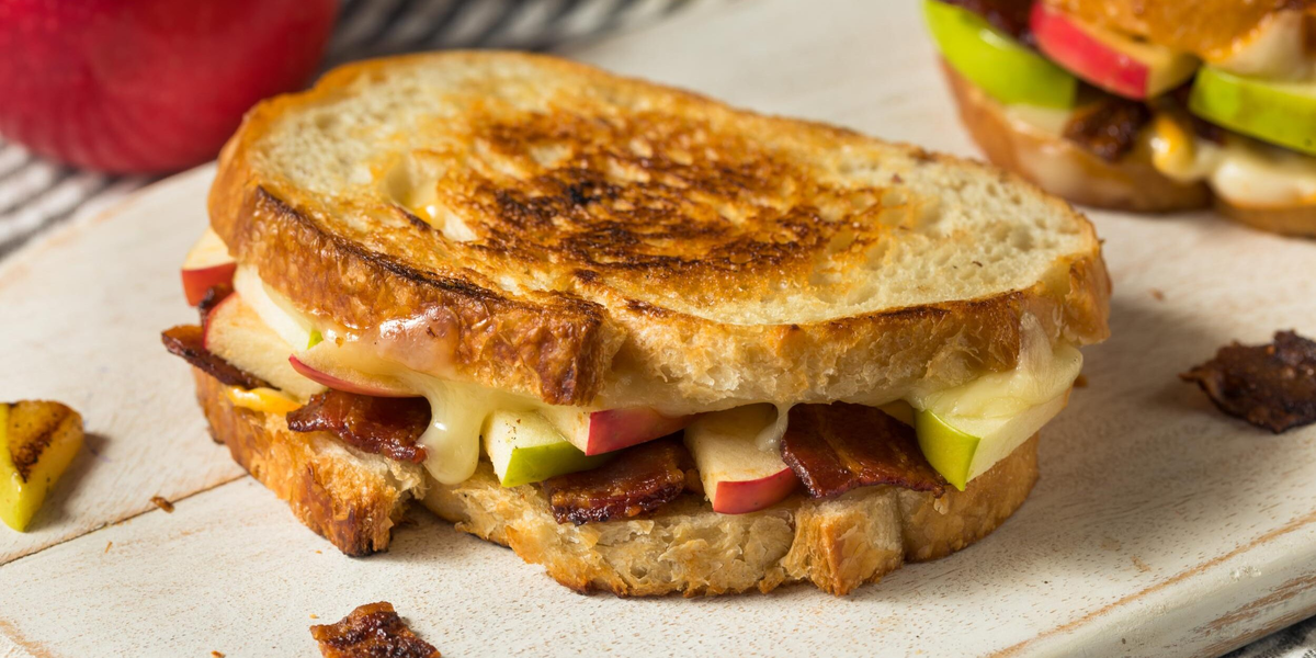 Сэндвичи с яблоками, сыром и беконом — это необычное, но невероятно вкусное сочетание, которое идеально подойдет для перекуса или легкого ужина. Сладость яблок отлично контрастирует с соленым беконом, а сыр придает блюду мягкость и насыщенность. Этот сэндвич – идеальный выбор для тех, кто любит сочетать неожиданные вкусы и получать максимум удовольствия от еды. Сложность: легко Время приготовления: 15 минут Калорийность: одна порция сэндвича содержит примерно 350-400 ккал. Шаг 1: Подготовка ингредиентов Шаг 2: Сборка сэндвича Шаг 3: Обжарка сэндвича Сэндвичи с яблоками, сыром и беконом — это вкусное блюдо, которое сочетает сладкие и соленые вкусы. Они идеально подойдут для завтрака, перекуса или даже легкого ужина. Попробуйте этот рецепт и наслаждайтесь уникальным сочетанием ингредиентов!