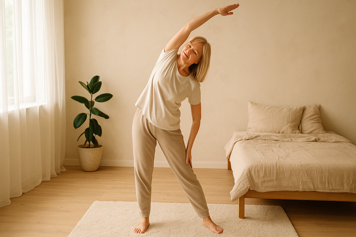 Вы когда-нибудь замечали, как сладко тянется кот после сна? Медленно, с удовольствием, будто говорит себе: «Я проснулся. Я живой». Наши тела — такие же. После 40, 50 и особенно в зрелом возрасте они нуждаются в мягком, бережном пробуждении. Не резкий подъём, не кофе наскоро, а плавное «включение». И всего 5 минут мягкой растяжки утром могут изменить то, как пройдёт ваш день — и ваше самочувствие в целом. ✨Почему это важно? С возрастом мышцы становятся менее эластичными, а утренние зажимы — привычными спутниками. Многие жалуются на скованность в спине, шее, пояснице. Добавьте к этому сидячую работу, стресс и недосып — и тело начинает «замолкать». Американский колледж спортивной медицины подтверждает: лёгкая растяжка утром помогает: ✨Простая 5-минутная последовательность 1. Потягивание лёжа (1 минута)