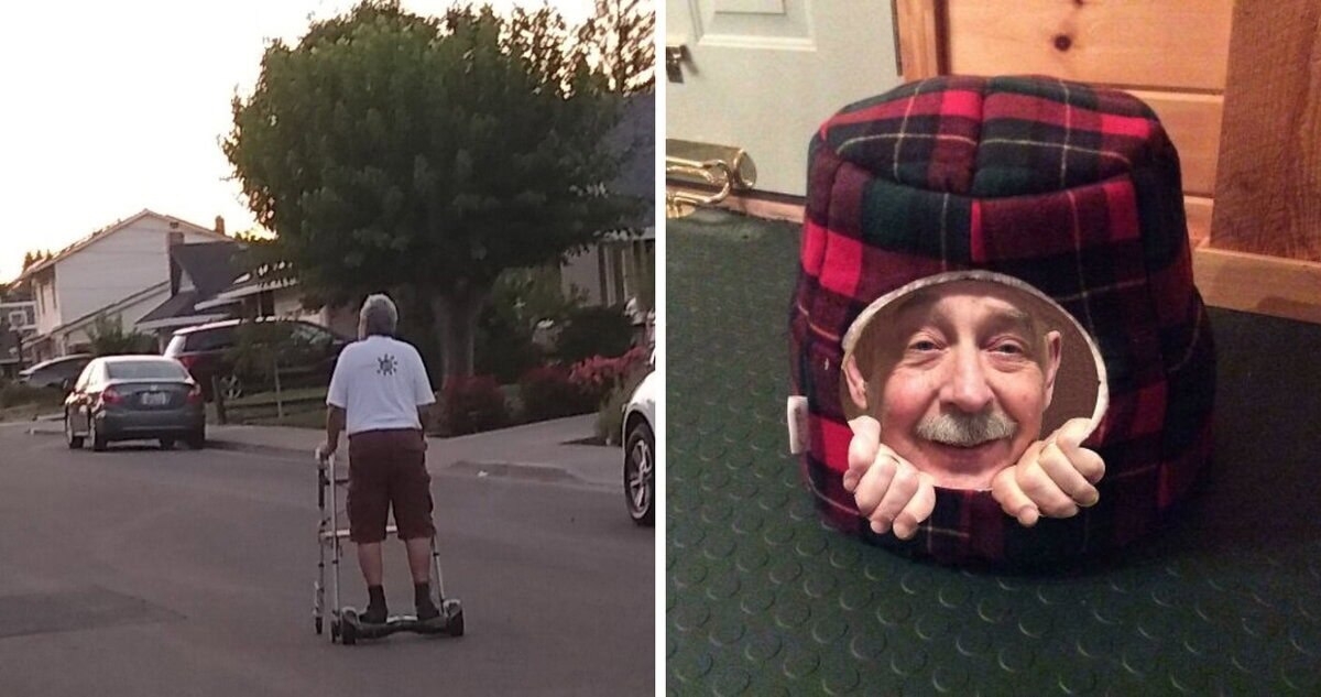 Бабушки, которые прячут бывших девушек на фото с помощью магнитов, дедушки, гоняющие по улице на ховерборде с ходунками, и коврики с фразами, достойными стендапа — всё это не шутки, а настоящие моменты из жизни людей, чей возраст не мешает им оставаться озорными, креативными и добрыми. В этих кадрах — настоящая жизнь, в которой седые волосы не мешают шутить от души.