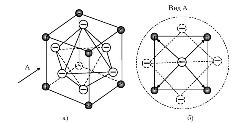 Для С-12 требовалось найти симметричную структуру, в которой присутствуют и тетраэдр, и октаэдр, а по узловым точкам можно распределить 24 позитронных и 18 электронных партонов. Эти многогранники дуальны, но распределить между ними партоны не удаётся. Решение вновь пришло из недр алхимии! Если совместить два тетраэдра в фигуру, известную как «восьмилучевая звезда Кеплера», то на пересечении тетраэдров образуется недостающий октаэдр. Этот мысленный опыт иллюстрируется на рисунке ниже.