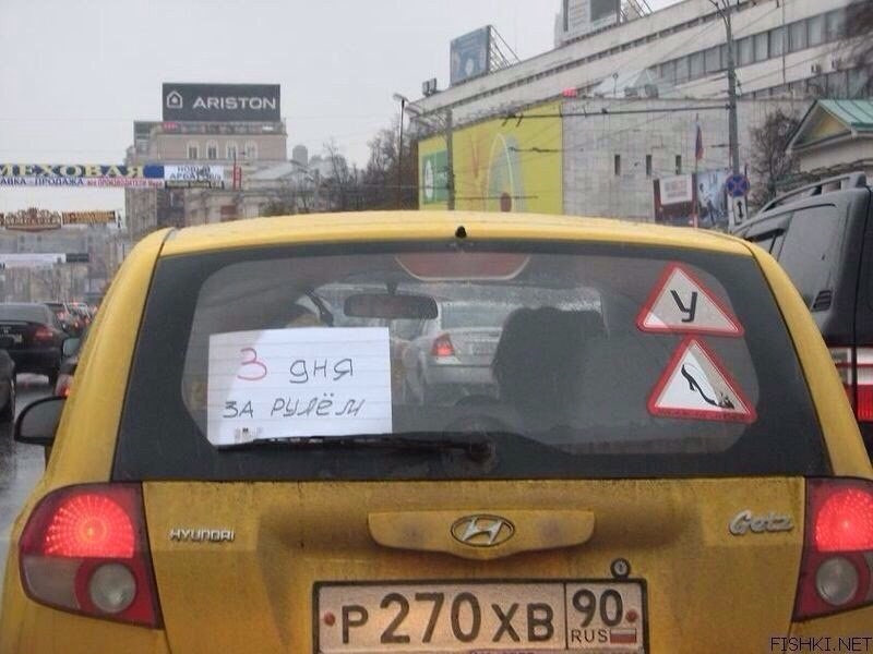 Никого уже не удивить дизайном с надписями на стеклах, дверках, корпусе автомобиля. Надо признать, что мимо никто не пройдет, не обратив внимание: прочтет, рассмотрит опусы и вразумительные наставления. Насколько позволяет ум, честь и совесть, настолько и пытаются шутить, предупреждать об опасности. А прохожим дается право возмущаться или, смеяться, если у пешеходов и проезжающих водителей развито чувство юмора. №1. На случай, если водители не разбираются в символике наклеек, хозяйка авто решилась на дополнительную самодельную наклейку. О водителе женского рода можно судить по приклеенной женской туфле с каблуком. Так вот женщина прикрепила еще и тетрадный лист с предупреждением, что недавно села за руль. Типа: берегитесь люди на пешеходных дорожках и на автотрассе. №2. Отличное эффективное напоминание, относительно расположения педалей газа с тормозом. Если с ориентацией туго, навряд ли поможет, даже прилично оформленная шпаргалка. №3. В этом случае можно не волноваться, встретив на