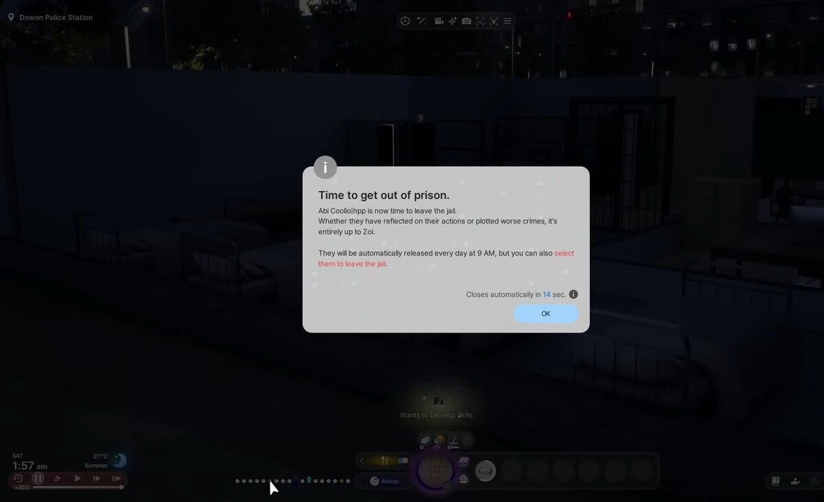 В новом корейском симуляторе жизни inZOI ваш персонаж имеет возможность заниматься разнообразными мирными активностями: работать, развлекаться, участвовать в лотерее, писать книги, готовить, обустраивать свое жилище, гулять, водить машину, общаться с другими персонажами и многое другое. Однако если Зои решит заработать денег незаконным путем или использовать насилие, полиция незамедлительно вмешается и отправит его за решетку, давая возможность подумать о своем поведении. Если ваш герой окажется в местах не столь отдаленных, вы сможете попытаться использовать функцию «Экстренное перемещение» из меню, но это не сработает. Другие опции и вкладки будут заблокированы или не приведут к желаемому результату. В этой статье мы расскажем, как выбраться из тюрьмы в inZOI, если ваш персонаж оказался в неприятной ситуации. Если Зои попался на каком-либо преступлении, на место происшествия прибудет отряд полицейских, который отправит его в местное отделение. В исправительном учреждении список досту