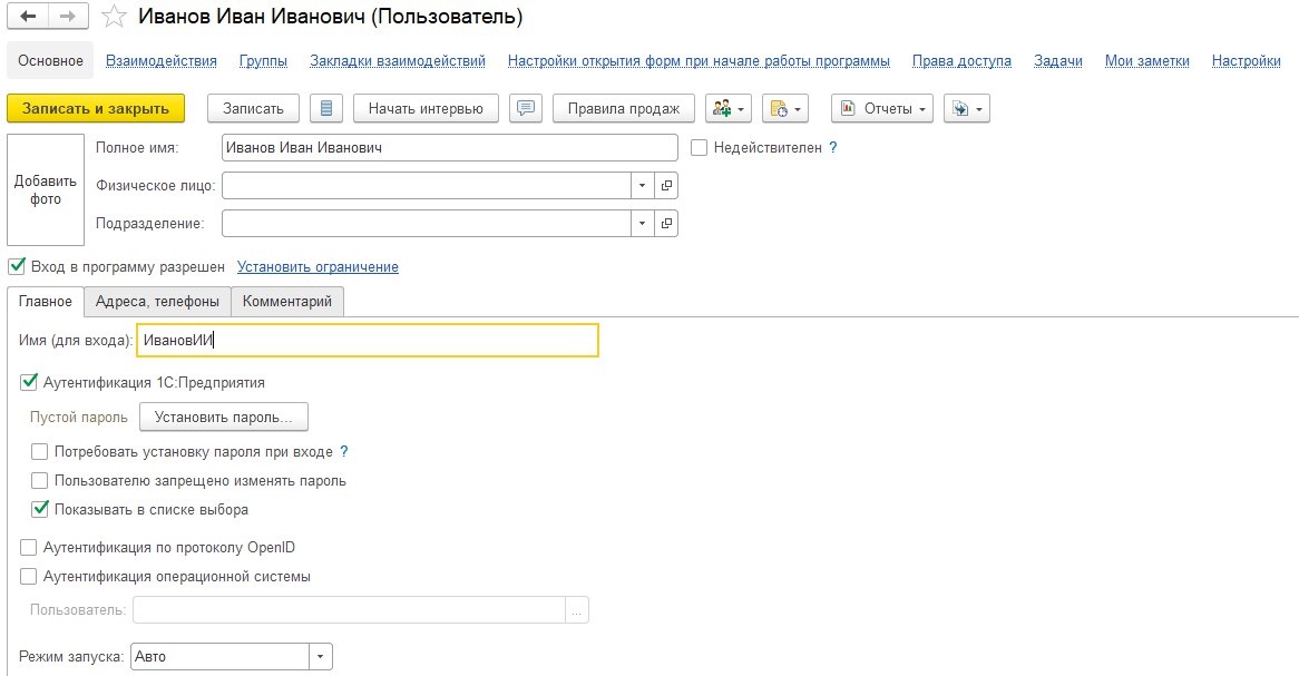 Создание пользователей в УТ📖 1️⃣Для создания пользователя переходим в раздел НСИ и администрирование – Настройка пользователей и прав; 2️⃣Далее переходим по гиперссылке Пользователи, в открывшемся справочнике нажимаем кнопку Создать. При создании пользователя указываем имя и устанавливаем пароль (если требуется), записываем; 3️⃣Переходим по гиперссылке Права доступа; 4️⃣По кнопке Включить в группу, выбираем группу доступа для пользователя (в нашем примере добавляем администратора); 5️⃣После этого закрываем пользователя и можем заходить в программу под ним. ✅Создание пользователя завершено. 🔷Для того, чтобы создать группу доступа в Настройка пользователей и прав переходим по гиперссылке Группы доступа. В открывшемся списке нажимаем Создать и указываем наименование и профиль. После этого записываем и закрываем, и назначаем пользователям 📣Подробнее в нашей инструкции: https://scloud.ru/ask_question/obshchie-voprosy-upravlenie/sozdanie-polzovateley-v-ut/