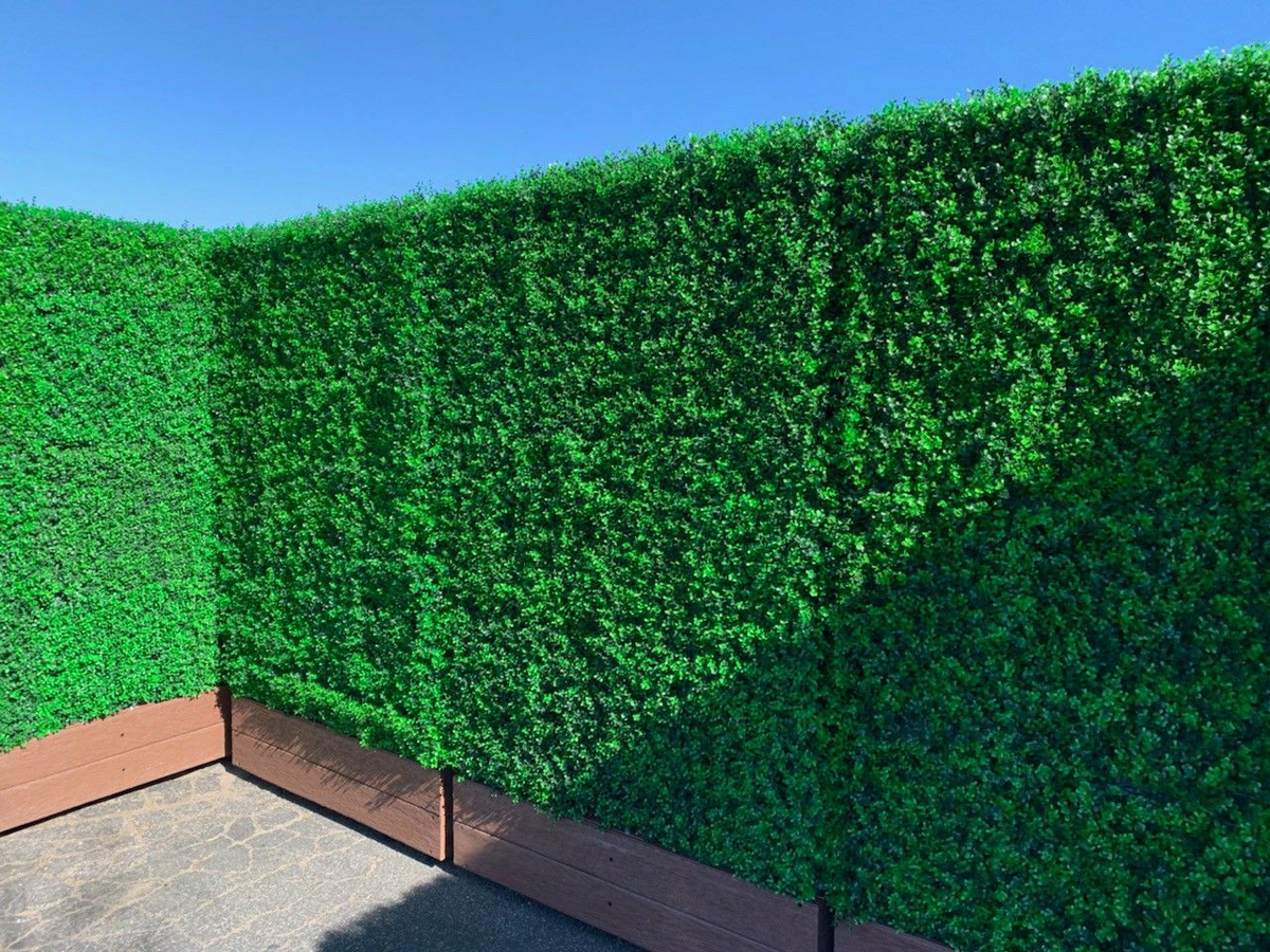 Искусственный забор — это панели или рулоны, имитирующие живую зелень, которые крепятся к существующему забору или сетке-рабице. Они создают эффект зелёной изгороди, при этом не требуют ни полива, ни подрезки, ни удобрений.