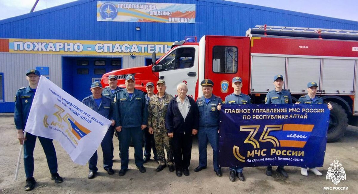 Заместитель начальника Майминской пожарно-спасательной части Евгений Килин поздравил всех присутствующих с праздником и вручил ветеранам подарки и памятные значки к 35-летию МЧС России.