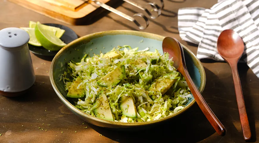 Весна — время свежих, легких и полезных блюд. Салат из капусты с авокадо и лаймом — это отличный выбор для тех, кто хочет побаловать себя чем-то вкусным, питательным и при этом не перегруженным калориями. В сочетании с ярким вкусом лайма, авокадо придает салату кремовую текстуру, а капуста — хрустящую свежесть. Такой салат будет прекрасным дополнением к обеду, ужину или просто лёгким перекусом. Сложность: легко Время приготовления: 15 минут Калорийность: примерно 150 ккал на порцию. Шаг 1: Подготовка ингредиентов Шаг 2: Сборка салата Шаг 3: Подача Весенний салат из капусты с авокадо и лаймом — это идеальный выбор для тех, кто хочет наслаждаться свежими и полезными блюдами. Яркий вкус и легкость в сочетании с полезными ингредиентами делают его незаменимым в весеннем рационе. Попробуйте этот салат, и он наверняка станет вашим любимым! Котлеты по министерски из куриного филе Рецепт классических драников Топ-5 кулинарных лайфхаков Новая неделя – новое меню! 60 блюд на выбор. Успейте заказа