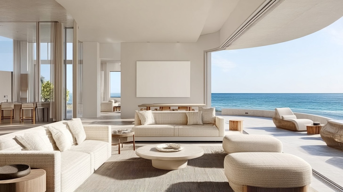 Создано на основе запроса: Magazine Editorial Hero Image . Hyper-realistic, A stunning, open-concept, beachfront living area that seamlessly blends indoor and outdoor spaces. A Plain White, Large Format Arwork Canvas sits on the back wall. --- Автоперевод: Журнал редакционного героя Изображение. Как тебе эта картинка? 🤔 https://dzen.ru/id/65c0c65c86e4f837c27b24d7 #ИИ #AI #нейросеть #midjourney #art