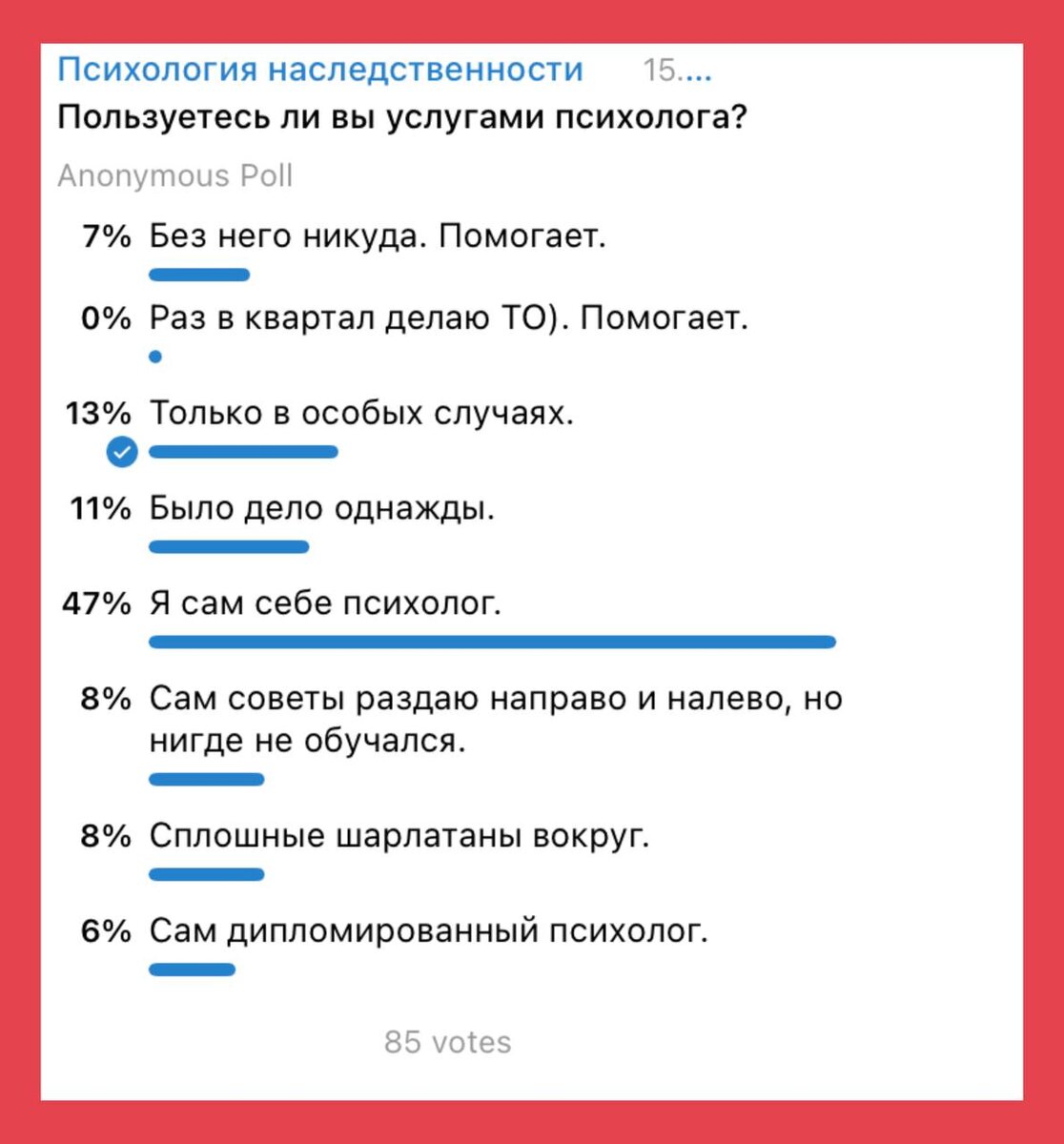 #самсебепсихолог Результаты одного из опросов показали, что абсолютное большинство сами себе психологи. А если в вопросе заменить профессию психолога на уролога, стоматолога, офтальмолога, ортопеда, хирурга…? Мало вероятно, что кто-то доверит лечение своей почки, зубов, глаза, да и любой другой части тела или органа самому себе, подруге или соседу!) Думаю, что такое заблуждение от кажущейся простоты того (разум/сознание/ментальность/душа), от чего в жизни зависит всё: опыт, результаты, состояние души и тела. О как!) #психогенетика #девиктимология #идеалметод #идеалметодтойча #ментальнаягенетика #психологиянаследственности #психология #тойч #олегшадурко #имт