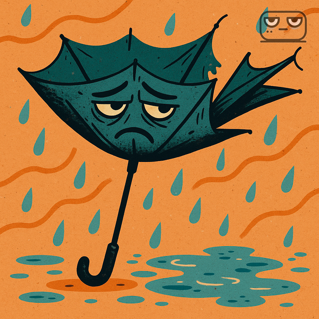 Абсолютно бесполезная вещь, этот ваш зонт. Ноги мокрые по колено! Аж бесит.