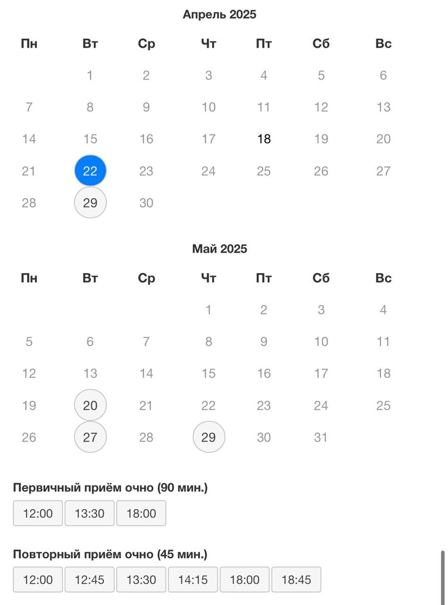 Напоминаю, что к детскому психиатру Лизе Мешковой есть окошки в апреле, потом убудет уже с 20х чисел мая