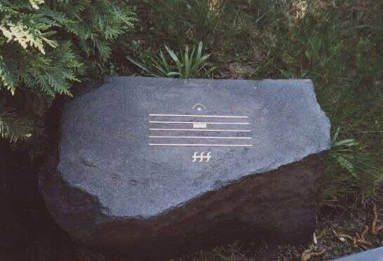 Камень на могиле композитора Альфреда Шнитке. Знак фермата над паузой буквально означает вечная тишина Символы fff (под знаком паузы) означают «Форте-фортиссимо — самое громкое», и в целом это можно интерпретировать как «Оглушающая вечная тишина»