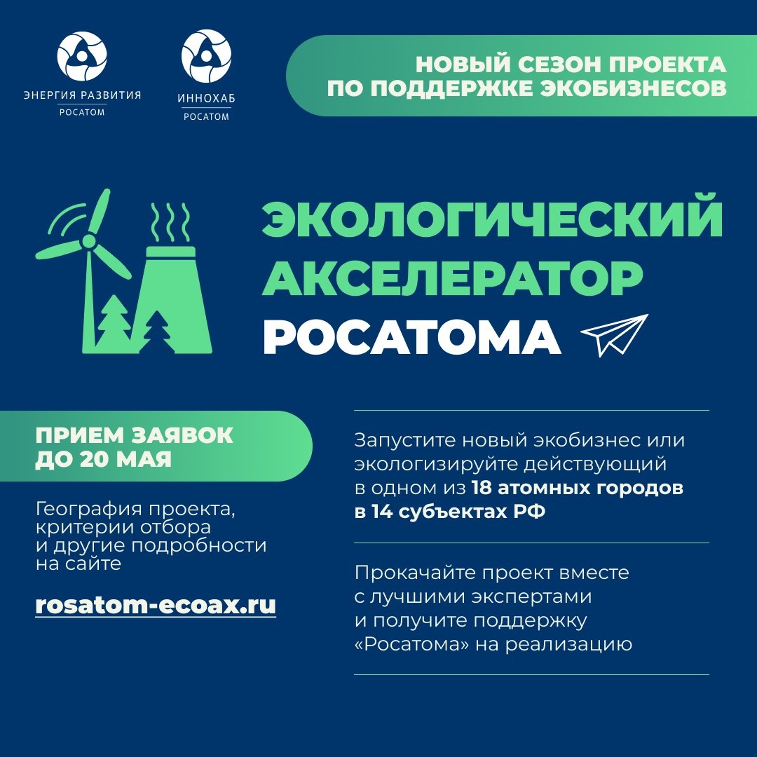 ♻Жители Калужской области, желающие реализовать бизнес-идеи в сфере экологии, а также предприниматели, которые хотят масштабировать бизнес и экологизировать процессы в нем, приглашаются к участию в Экологическом акселераторе. Подробности - https://rosatom-ecoax.ru/ 👍 Подписаться | Прислать мероприятие