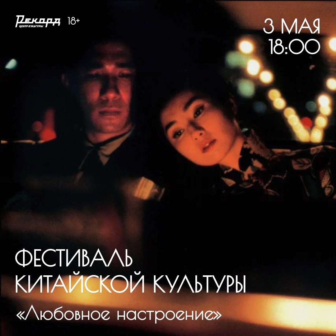 Фестиваль китайской культуры в Центре культуры «Рекорд»! 3 мая в 18:00 показ культового фильма Вонга Кар-вая «Любовное настроение»! Вход свободный, по регистрации В 2025 году фильму Вонга Кар-Вая «Любовное настроение» исполняется 25 лет. Это одна из самых знаменитых работ режиссера. Почему стоит посмотреть? Идеальное сочетание стиля, визуала и эмоций. Легендарный стиль съёмки, музыка и атмосфера. Гонконг, 1962 год. Две супружеские пары, господин Чоу с женой и госпожа Су с мужем, одновременно въезжают в соседние квартиры. Пока их супруги пропадают на работе или в заграничных командировках, Чоу и Су проводят много времени в одиночестве и общаются друг с другом как обычные соседи. Все меняется, когда они обнаруживают, что их супруги изменяют им друг с другом. Чоу и Су пытаются понять, как начался этот роман, и постепенно сближаются, но не хотят давать волю чувствам. Гонконг, Китай, 2000, 96 мин., 18+ #яместный