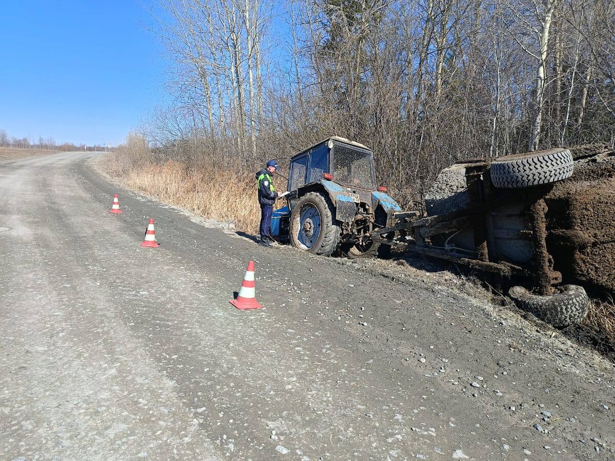 🚜 Трактор МТЗ-8 съехал в кювет и перевернулся.