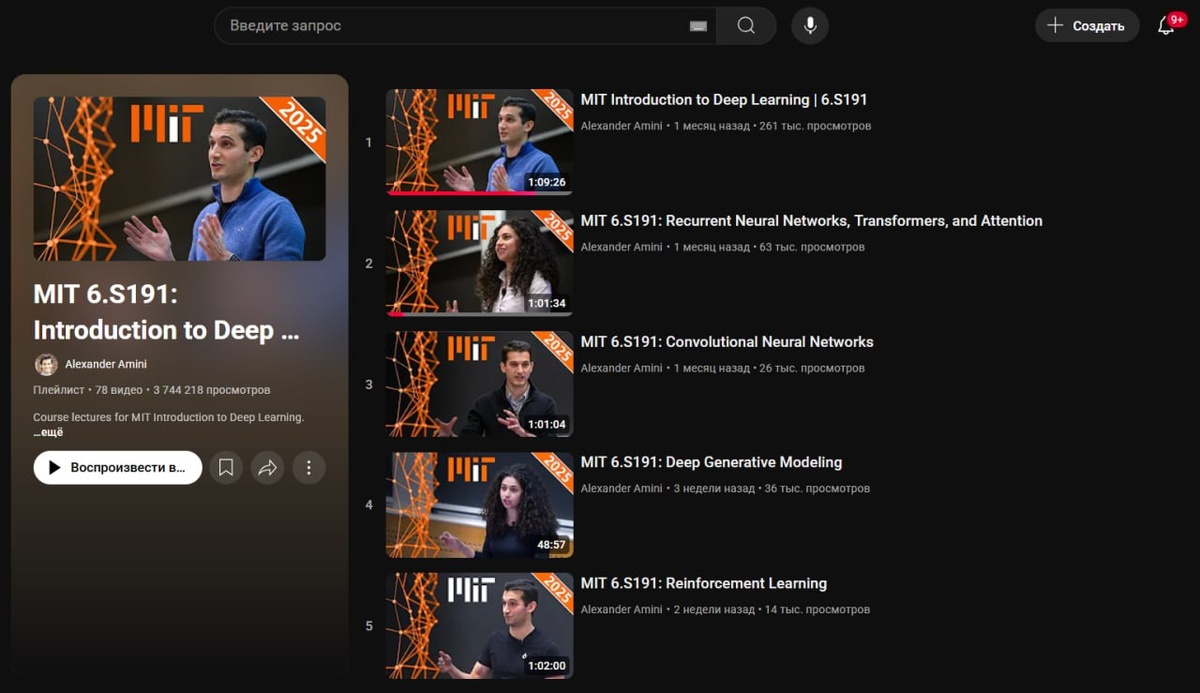 Свежая версия вводного курса от MIT уже доступна, а новые лекции выходят каждый понедельник. Это отличная база по нейросетям, которая затрагивает: CV, NLP, LLM и даже приложения в медицине.