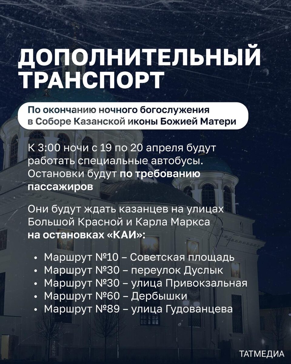 В ответ на пост 🌌✔️ В Казани организуют ночной транспорт для перевозки горожан после службы Рассказываем, где пройдут дополнительные маршруты. @tatmediaofficial