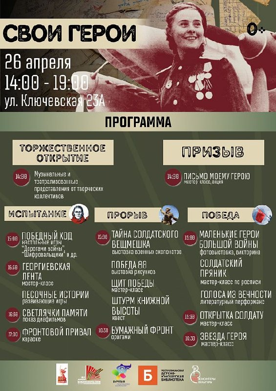 В детско-юношеской библиотеке пройдут «Библиосумерки-2025» Программа мероприятий для детей и родителей 26 апреля Республиканская детско-юношеская библиотека распахнет свои двери для всех желающих на ежегодной акции «Библиосумерки»! Тема "Библионочи" детско-юношеской библиотеки в 2025 году – «Свои герои. Память поколений – дорога в будущее». ❤️Мероприятия акции призваны укрепить патриотические чувства, рассказать о подвигах героев Великой Отечественной войны и участниках Специальной Военной Операции, а также способствовать популяризации чтения и привлечению молодого поколения в библиотеку. Место проведение: Республиканская детско-юношеская библиотека, центр чтения им. Д. Батожабая (ул. Ключевская 23а) Дата и время: 26 апреля 2025 года, с 14:00 до 19:00 Контактная информация: т. 43-39-80, https://vk.com/youth_library03 Приглашаем вас на «Библиосумерки 2025», приходите всей семьей, будет интересно!
