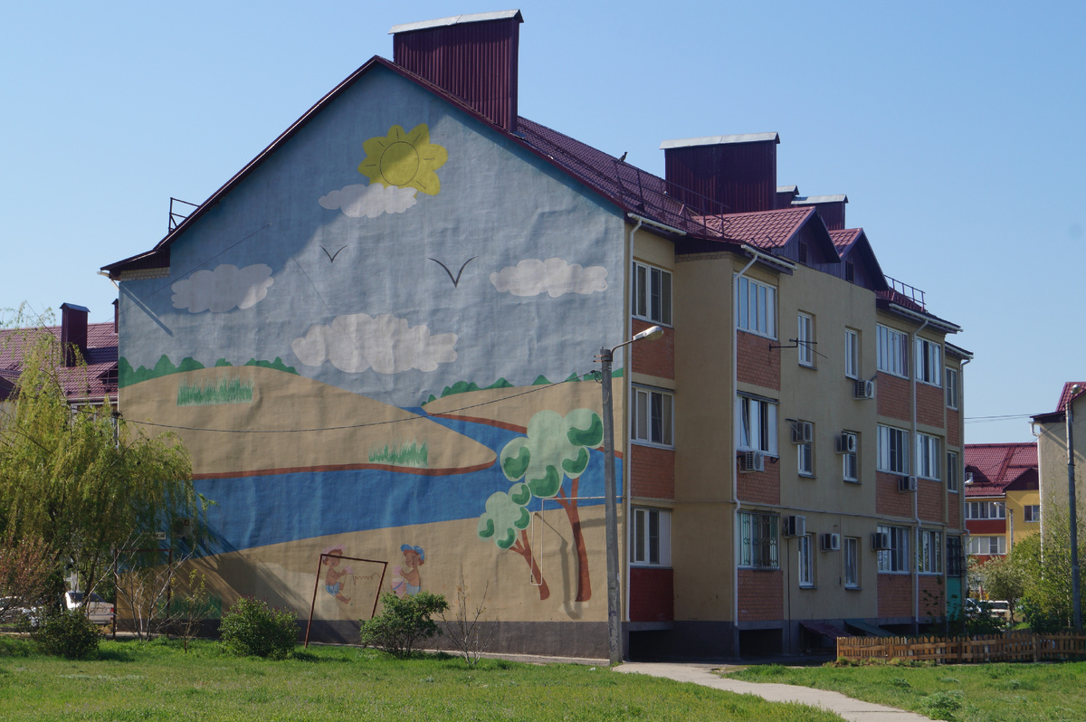 Побывав в Элисте, я обратил внимание, что там довольно много красивых муралов. Наша архитектура, особенно в спальных районах, редко радует глаз. Возможно, зодчие и хотели бы привнести больше красоты в урбанистические пейзажи. Но заказчику нужно дешевле. Для простых людей дворцы не строят. Поэтому меня радует настенная живопись как попытка хоть как-то разбавить унылое однообразие наших улиц. Заметил, что похвальное начинание неплохо приживается в городе Волжском – спутнике Волгограда. Пока это отдельные ласточки, не делающие весны (хотя, судя по погоде, тут уже чуть ли не лето). Но я надеюсь, что редкие птахи послужат хорошим примером. И в скором времени появится целая стая. Иногда сплошные стены используют как рекламный носитель. «Дядя Ваня» мне не платил, размещаю бескорыстно как пример. Но готов принять в дар банку огурцов. Если вы на полке в магазине увидите консервы с таким названием, то знайте, что овощи собраны в Волгоградской области. (Полагаю, я тут уже на две банки наговорил!