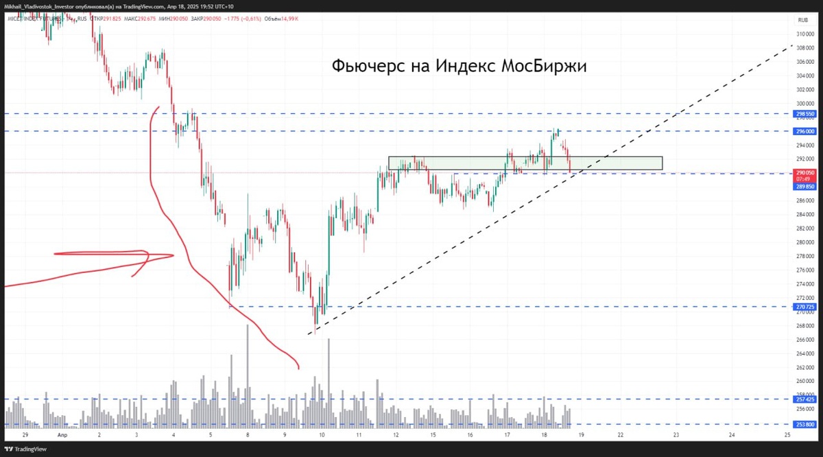 Мы у важной поддержки локальной 289850 по фьючерсу на индекс МосБиржи $MXM5