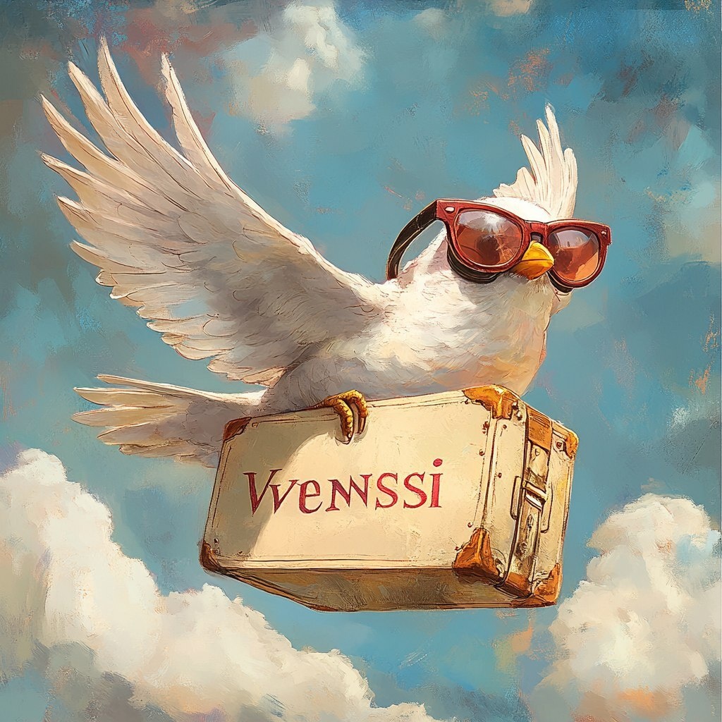 Создано на основе запроса: Una colomba con occhiali da sole appollaiata su un cartello 'Vendesi', in volo su Milano con uno zaino in spalla. Stile illustrativo, ironico e dinamico, con toni moderni. La scena è permeata da luce naturale, colori pastello e un'atmosfera raffinata che fonde l'eleganza milanese con un tocco di umorismo contemporaneo. --- Автоперевод: Una Colomba Concchiali da sole appollaiata su un cartello 'vendesi', в Volo su milano con uno zaino в Спалле. Какое твое мнение? 🤔 https://dzen.ru/id/65c0c65c86e4f837c27b24d7 #ИИ #AI #нейросеть #midjourney #art