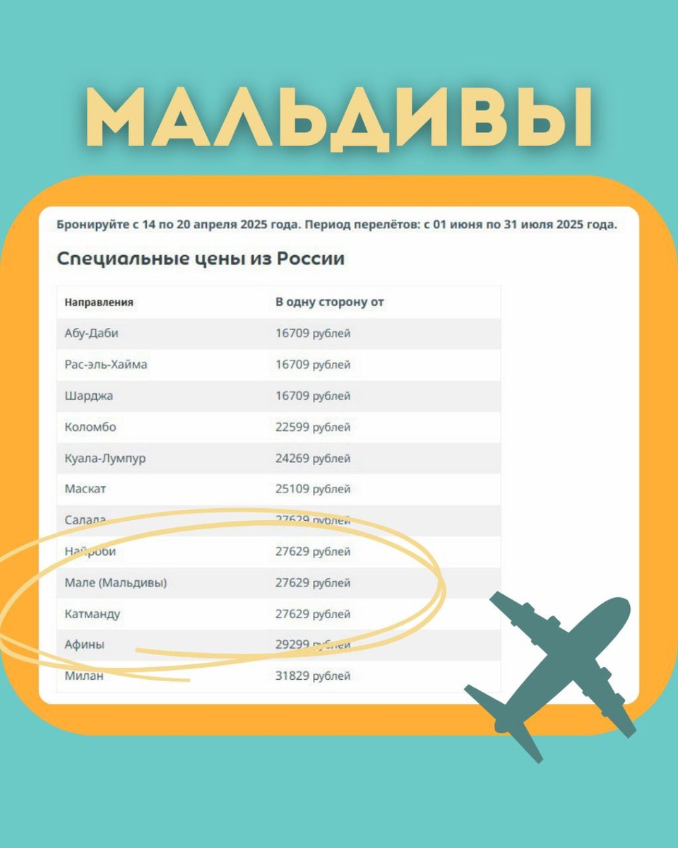 дата бронирования с 14 апреля по 20 апреля 2025 года, а период перелета с 1 июля по 31 июля спешите бронировать напрямую на сайте авиакомпании.