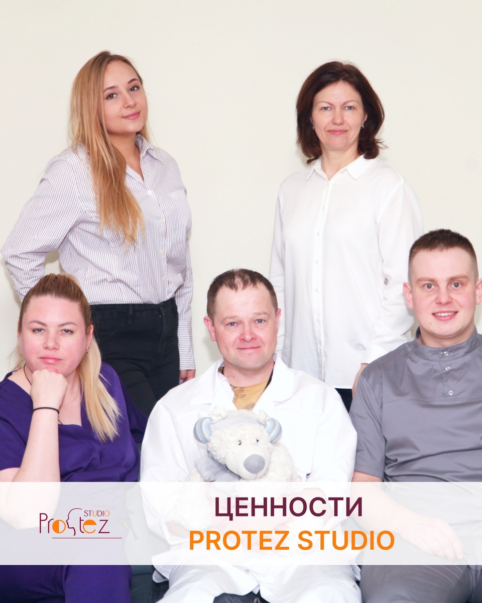 Protez Studio — это больше, чем просто протезы. Мы придаем большое значение ответственности, осознавая уникальность каждого человека. Именно поэтому мы стараемся создать среду, в которой каждый человек чувствует себя особенным и значимым. Мы гордимся своими ключевыми ценностями, формирующими корпоративную культуру и влияющими на повседневную работу сотрудников: Смело идем навстречу новым возможностям, стимулируем рост и креативность. Инновационные технологии и подходы к производству, внимание к новейшим тенденциям в области протезирования — всё это отражает наше желание двигаться вперёд и развиваться. Наш бизнес основан на доверительных отношениях внутри коллектива. Мы объединяем талантливых специалистов, предоставляя возможность проявлять инициативу и делиться знаниями. Атмосфера уважения и поддержки способствует развитию каждого члена команды и повышает производительность всей компании. Качество — неотъемлемый элемент всего, что мы делаем. Важна каждая деталь: от гиппоаллергенного ма