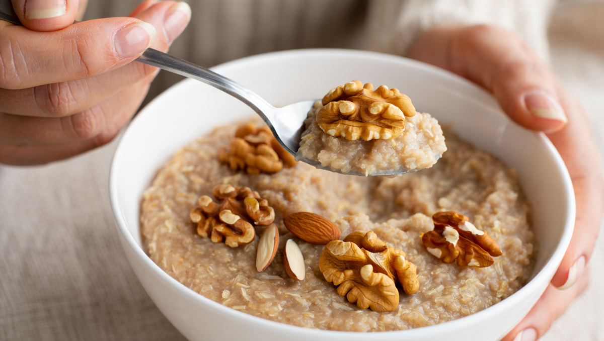 Чем заменила: Каша. Да, та самая, из детства. Но не пресная! Овсянка с орехами, семенами чиа, кусочками груши и щепоткой корицы. Густая, сытная, с разными текстурами — хруст, мягкость, сладость специй. Она словно обнимает изнутри, давая сил на полдня.