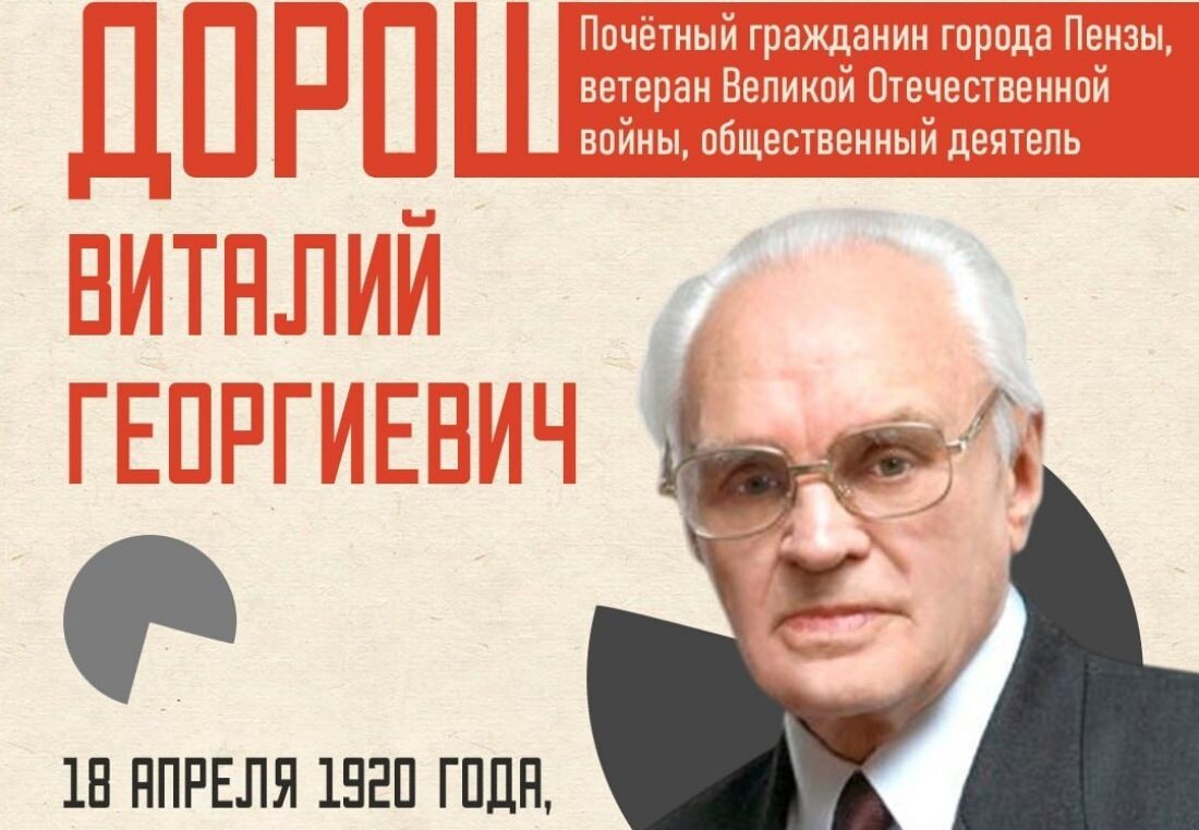 Участнику Парада Победы 1945 года, ветерану труда, стоявшему у истоков профсоюзного движения в Пензенской области, Виталию Дорошу исполнилось 105 лет. Поздравления пензенцу опубликованы в группе администрации города в социальной сети. «Вся его жизнь — пример преданности делу, людям и Родине. Сердечно поздравляем с юбилеем и говорим спасибо за доблестный труд и огромный вклад в развитие региона!» - говорится в посте. Виталий Дорош начал свой трудовой путь в 1937 году на заводе им. М.Ф. Фрунзе. С 1956 по 1981 год трудился на посту председателя Пензенского обкома профсоюза местной промышленности и коммунально-бытовых предприятий. С 1996 по 2012 год - председатель Пензенского городского совета ветеранов войны, труда, Вооруженных сил и правоохранительных органов. Виталий Дорош награжден медалью «За доблестный труд в Великой Отечественной войне 1941-1945гг.». Внес значительный личный вклад в развитие ветеранского движения Пензы и Пензенской области. Ранее губернатор выразил соболезнования ро
