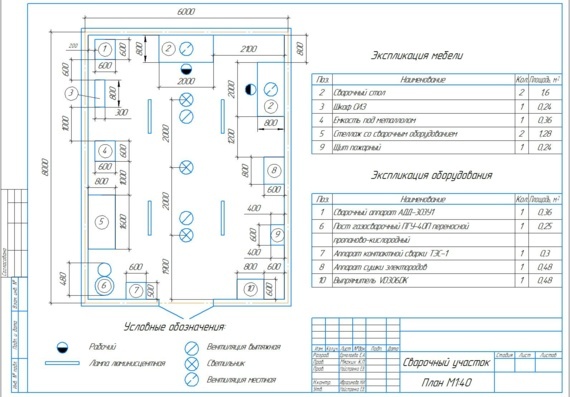 - Зона подготовки – стол для сборки деталей, зачистки кромок.