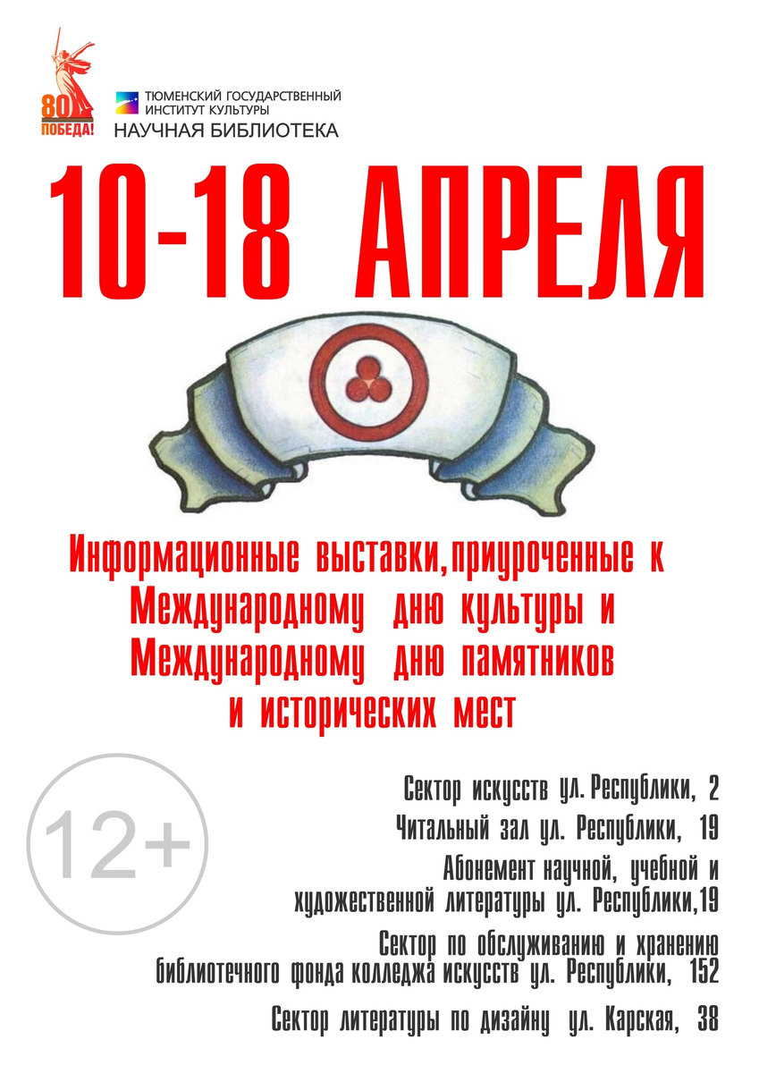 10 апреля во всех структурных подразделениях научной библиотеки ТГИК открываются информационные выставки, приуроченные к Международному дню культуры (15 апреля) и