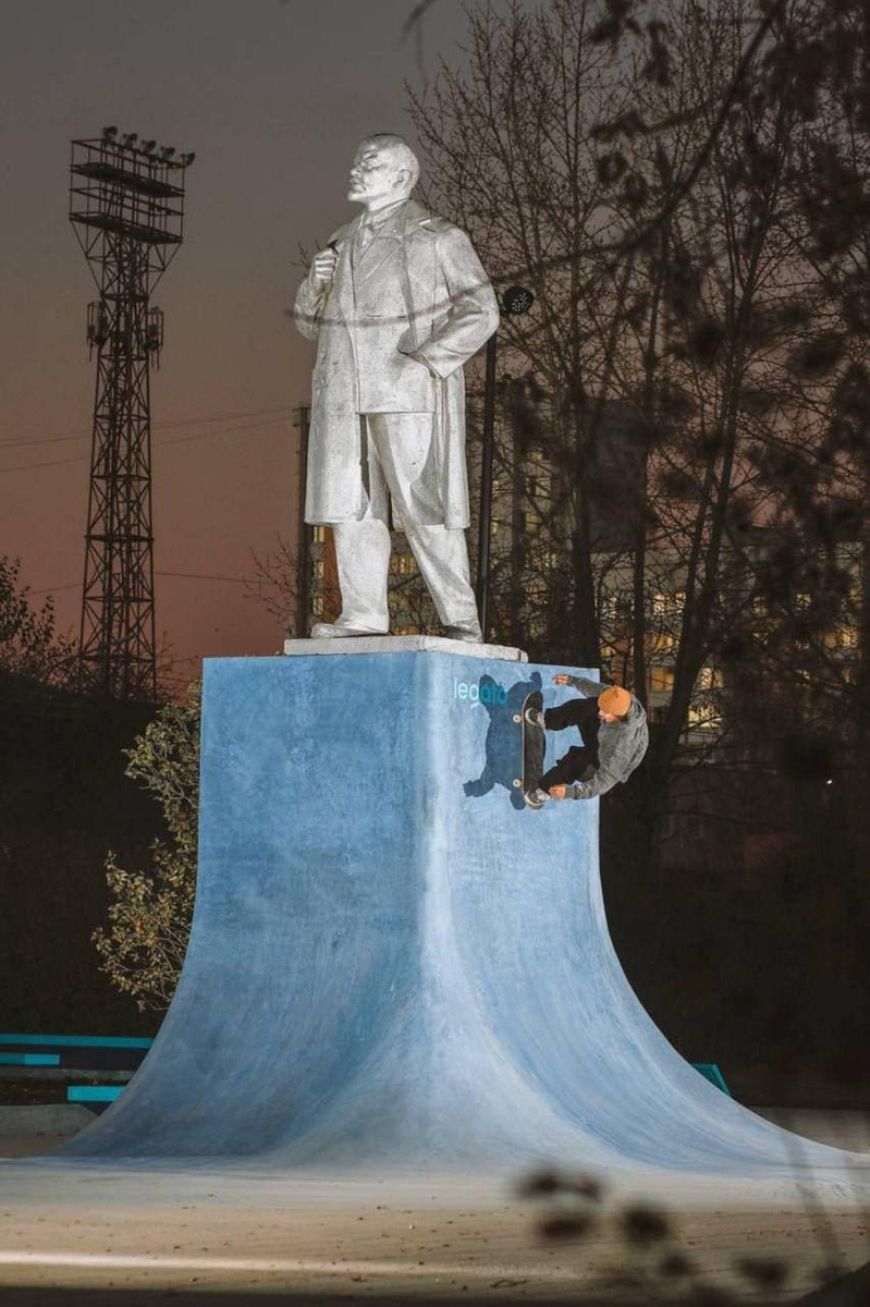 В Верхней Пышме памятник Ленину превратили в площадку для скейтеров.