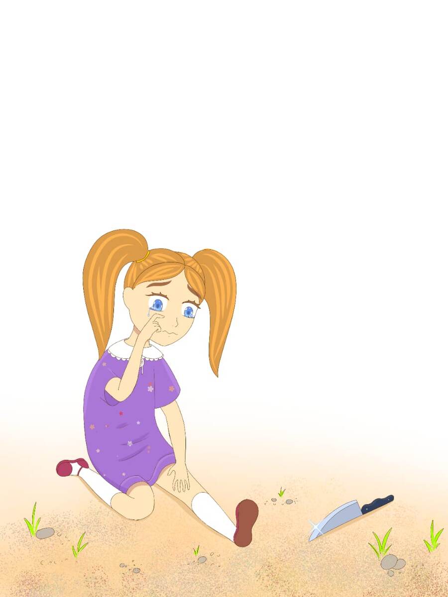 Жила-была маленькая девочка, которую звали Гарри. Ничем особенным девочка от других детей не отличалась. Только вот была она очень непослушной. Все что мама с папой ей говорили, советовали – все пропускала мимо ушей. Вышла Гарри на улицу. Ребята все знакомые на детской площадке. Стали вместе играть. В догонялки, на качельках. Весело. Потом решили в прятки поиграть. А куда во дворе спрячешься? «Ага, вон есть местечко за кустом под балконом» подумала Гарри. Спряталась. Наблюдает потихоньку через листву. Всех ребят уже нашли, а Гарри никак не могут. Скучно сидеть под балконом, но и выходить самой не хочется. Пусть еще поищут. Смотрит Гарри, мусор какой-то рядом лежит. Ножкой его поворочала. Ух ты! Вот это находка! Целый кухонный нож. Блестящий с деревянной ручкой, почти новый. Схватила Гарри ножик и бегом к ребятам. Не утерпела, чтобы дальше прятаться. «Смотрите, смотрите что я нашла!» - кричала Гарри подбегая к друзьям. Все ребята ее окружили, стали завистливо находку разглядывать. И тут