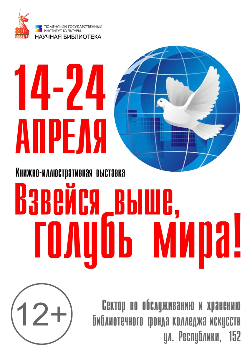В читальном зале колледжа искусств (ул. Республики, 152, ауд. 1103) научной библиотеки ТГИК открыта книжно-иллюстративная выставка «Взвейся выше, голубь мира!»