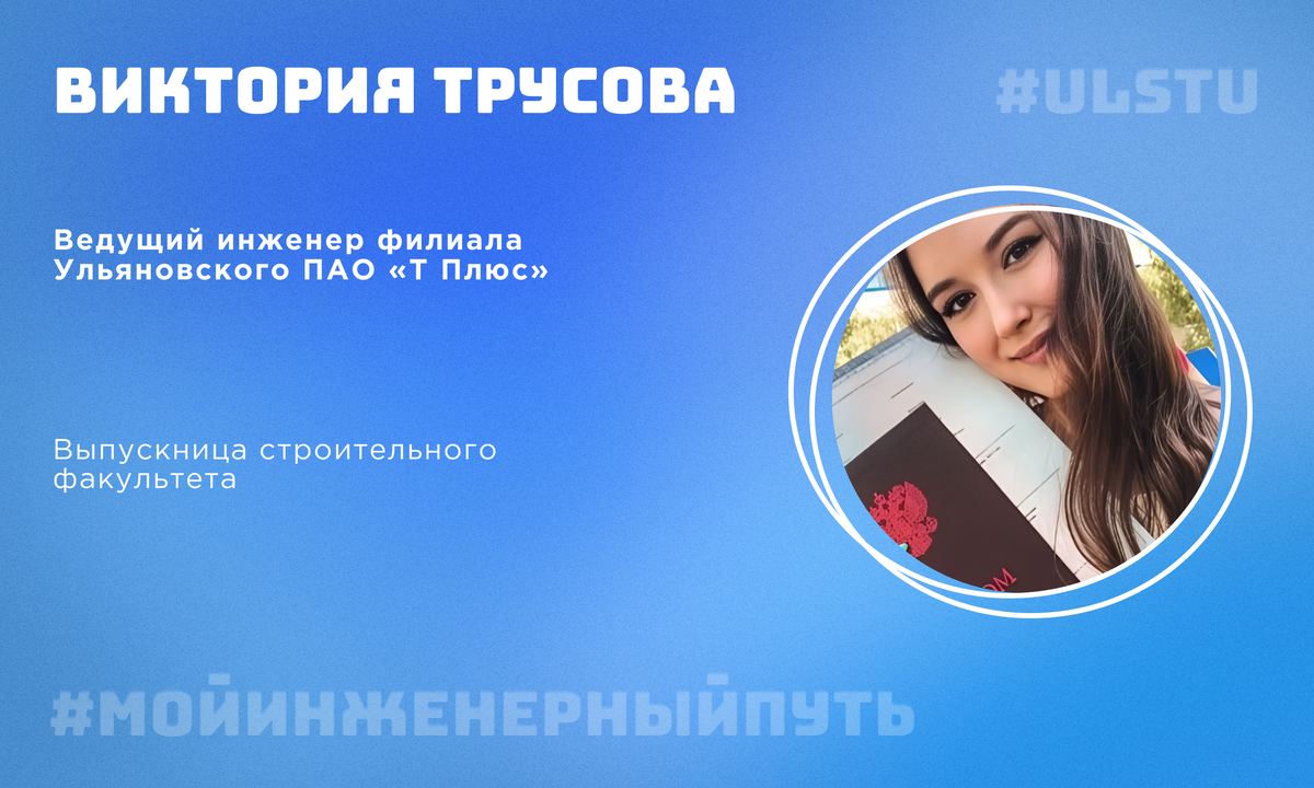 Продолжаем рубрику «Мой инженерный путь», где мы рассказываем об успехах специалистов, окончивших ульяновский Политех. Сегодня делимся историей Виктории Трусовой, она стала ведущим инженером филиала Ульяновский ПАО «Т Плюс». Виктория начала свой путь в мир инженерии с поступления на строительный факультет Ульяновского государственного технического университета. Она выбрала специальность «Теплогазоснабжение и вентиляция им. В.И. Шарапова».